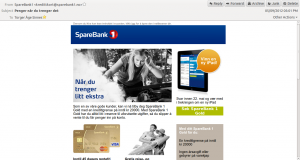 No er dei i gang igjen. Denne gongen på e-post. I dag tidleg mottok eg ein e-post frå SR-Bank. I denne kunne dei stolt tilby meg, som ein av deira «gode kunder», 20.000,- ekstra med deira SR-Bank Gold.