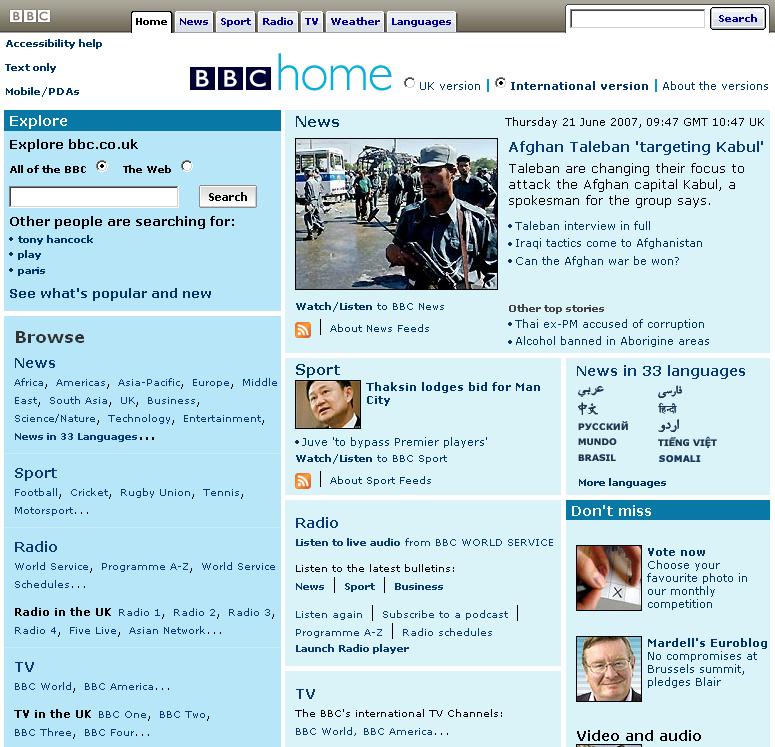 Sjølvsagt finst også desse kanalane på nett. Eg har teke skjermbilete av kvar av kanalane sine framsider i dag, slik at du kan samanlikna sjølv og sjå kva du tykkjer. Det slår i alle fall meg at av dei tre sidene, så framstår Al Jazeera si som den beste og mest informative. Det kan synast som om dei tre har litt ulikt fokus. BBC vel å lenkje til sines radio og fjernsynskanalar, i tillegg til å lenkje til tre nyhender. CNN ser ut til å ha eit fokus på multimedia, i tillegg til at dei har plassert ein stor reklamesnutt midt i åsynet på ein når ein klikkar seg inn. Tek vi føre oss Al Jazeera International, ser ein at den einaste reklamesnutten er ein reklme for abbonement på nyhende frå deira side. Men det mest imponerande, er at dei presenterer heile 31 nyhendesaker på det eg oppfattar som ein særs god måte.