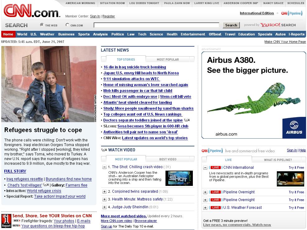CNN er ein kanal eg er innom rett som det er. Det same er det med BBC. Då dei to flya flaug inn i World Trade Center, sat eg av alle ting og såg på CNN. Det var ei ganske surrealistisk oppleving. Då George W. Bush bestemde seg for å gå til åttak på Irak i 2003, endte det og opp med at eg såg dette på CNN då ein amerikansk turist kom flygande inn i resepsjonen på hotellet i Kathmandu og bar seg over korleis me kunne sitje og sjå på cricket (nasjonalsport i store delar av søraust-asia) når det var krig på gang!