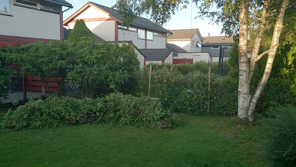 20 dagare etter at me overtok nytt hus, er starten på min fyrste urbane hugelkultur på plass. Naboen gjekk laus på hekken sin, og eg tykte det var for galt at kommunen skulle få posane med organisk materiale når eg like gjerne kunne ta dei. Ein nabo som vil ha hekkekapp…jo, det er sikkert ikkje heilt normalt. Men kva er vel normalt no til dags?
