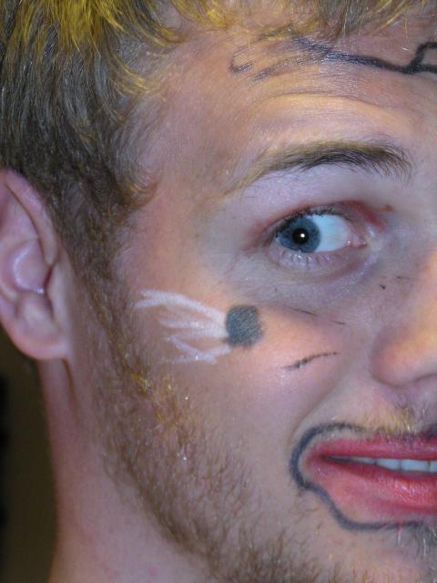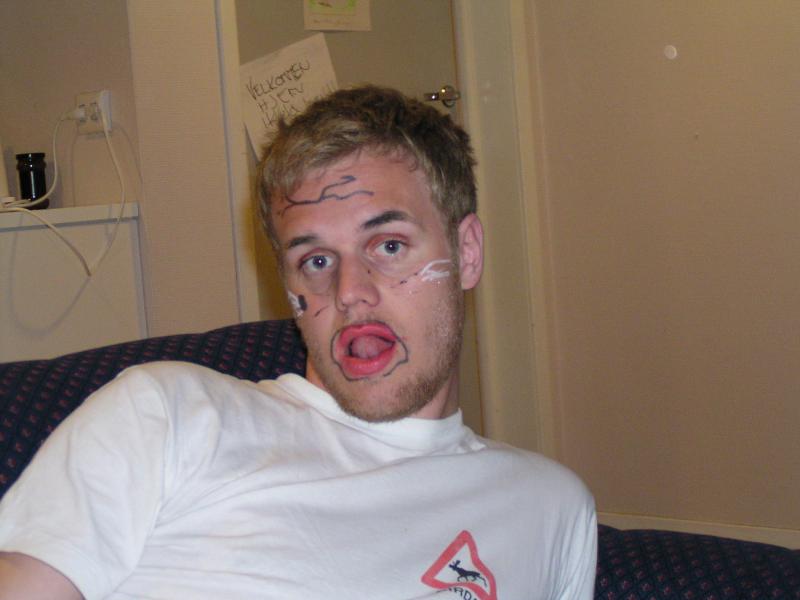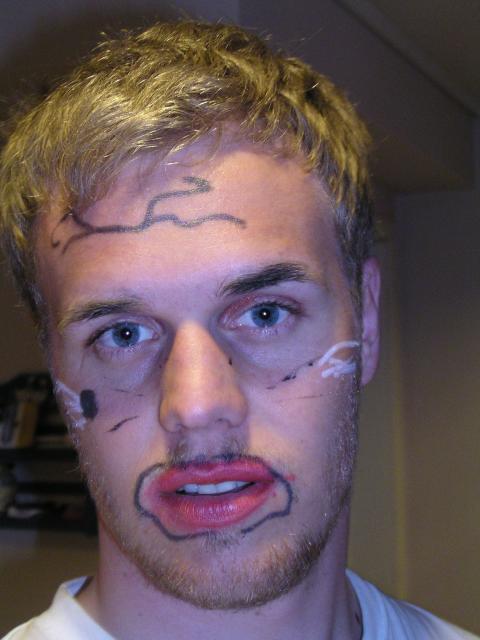 I kveld vart eg utfordra i sminkekonkurranse av Trine og Laurine. Som den mannen eg er, ville det jo ha vore flaut å takka nei til ei utfordring, så eg tok ho på strak arm. Resultatet vart som de kan sjå omtrent som eit verk av Picasso, men eg fann vel ut at eg skal tone ned litt på augeskyggen heretter.