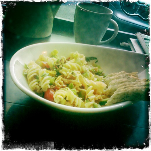 Så med snippsekken trygt plassert i det som nok er Voldas tryggaste hus, var ikkje vegen lang til ein superflott lunch/catch-up med Hanne på eit nytt tilskot i utelivsbransjen i Volda. Pastasalat og ein god kopp te i lausvekt gjorde under med filmenergien i kroppen.