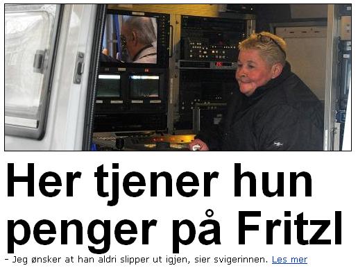 Dagbladet gjer det altså igjen. Nok ei billeg, lite sjølvkritisk overskrift tonar i mot meg, og det er ikkje ein gong gått ei veke sidan sist. Herrane Lofstad og Norum Monsen ser ut til å ha fått fritt spelerom med tanke på overskrifter. Denne gongen har dei teke tak i eit aspekt av Fritzl-saka i Austerrike.Christine R.